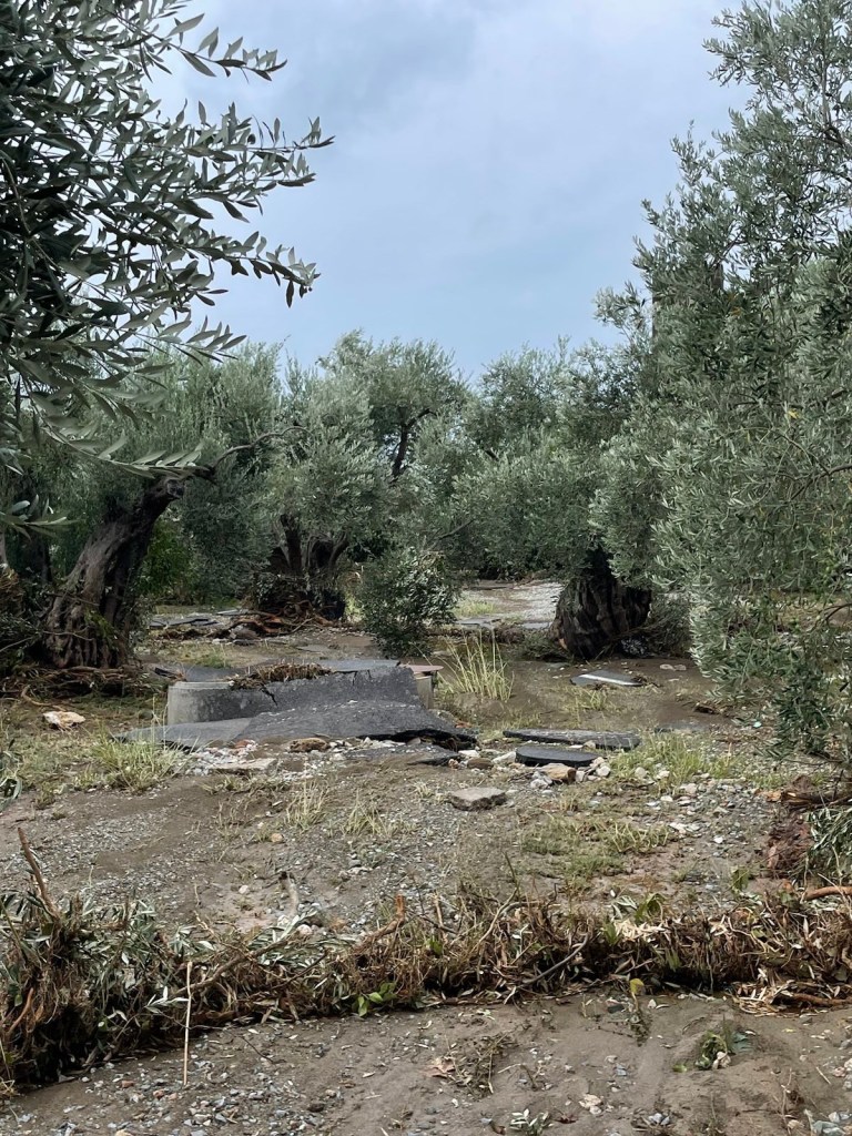 Laut Wetterforecast kommt aber noch einmal heftiger Regen und es soll erst am Freitag endgültig vorbei sein. In der Kalamos Facebook Gruppe bieten Leute sich gegenseitig Hilfe an. Beide Straßen nach Argalasti sind vollkommen zerstört. Ein Räumtrupp versucht eine Straße frei zu kriegen. Ob Marios Auto noch fährt, weiß er nicht. Aktuell kann er damit das Grundstück nicht verlassen.