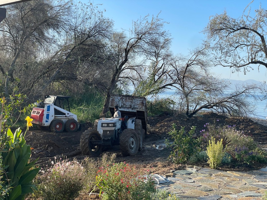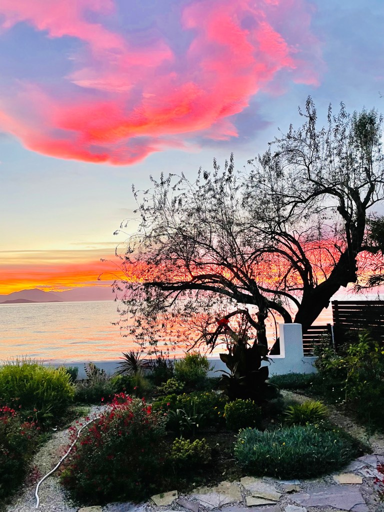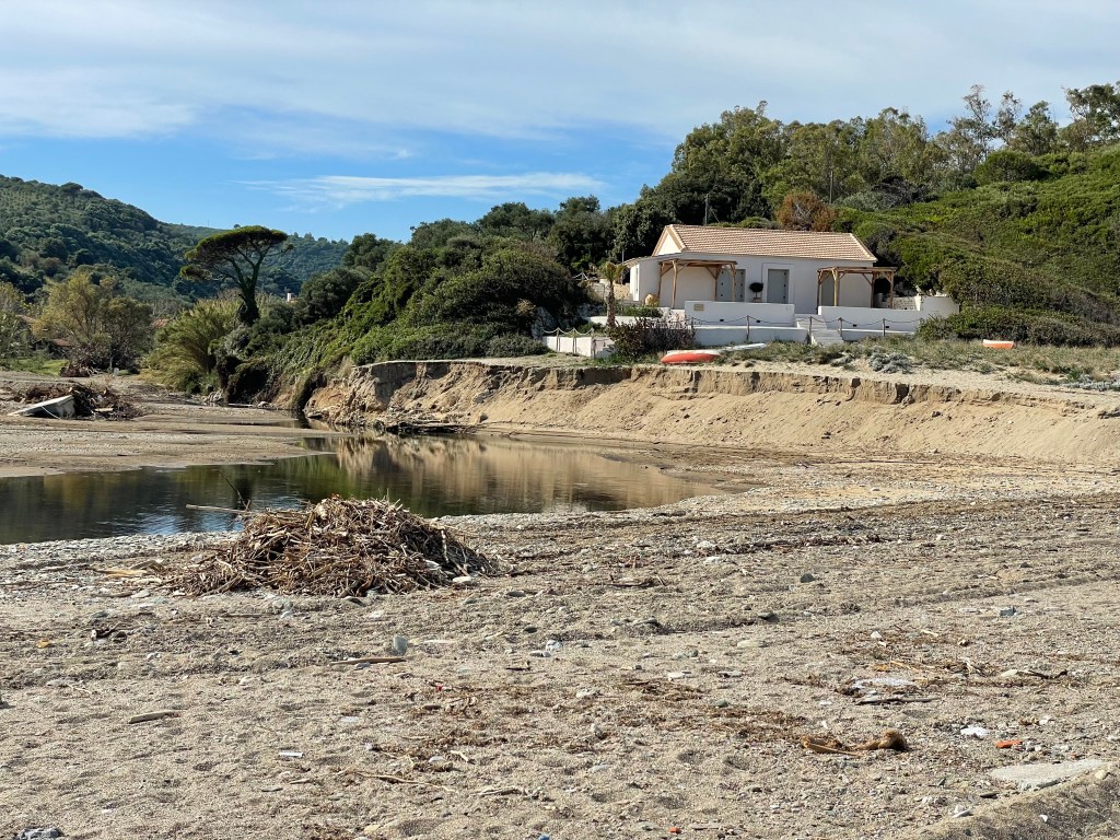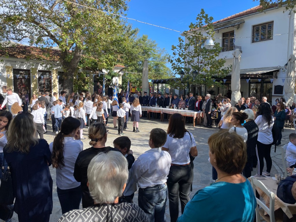 Elisabeth und ich waren von 26.10. bis 3.11. da. Elisabeth das erste Mal seit den extremen Regenfällen. Das Haus hat das Hochwasser ohne Schaden überstanden und die neue Bucht wurde schon vor unserer Ankunft zugeschüttet. Während unserer Anwesenheit sind weitere Traktorladungen Steine, Sand und Erde herangeschafft worden und hoffentlich schaut es bald wieder so aus wie früher! Wir haben die enormen Schäden in Milina und Potistika mit dem Rad besichtigt. Viele haben ihre komplette Existenz verloren. Ob nächsten Sommer wieder Touristen kommen, steht in den Sternen. Trotzdem ist es unheimlich schön hier am Pelion. Wir haben viele neue interessante Leute kennen gelernt, die in Kalamos fast das ganze Jahr leben oder sehr viel Zeit hier verbringen: Caroline aus Amsterdam hat 6 Pferde mit denen sie Meditationsveranstaltungen anbietet. Ein Lehrerehepaar aus Volos, das lange in Deutschland unterrichtet hat. Ein schwedisches Ehepaar, beide Chemiker(innen) mit wissenschaftlicher Karriere. Und Petra und Helmut aus Österreich, er war Schlagzeuger bei Wolfgang Ambros. 28.10. ist Nationalfeiertag in Griechenland, man erinnert sich daran, dass 1940 Mussolini die Griechen aufforderte sich bis zum 28.10. dem faschistischen Italien zu unterwerfen. Die Griechische Regierung antwortete mit einem kurzen, eindeutigen „Ochi“ – „Nein“. Der 28.10. heißt deshalb in Griechenland „Ochi“-Tag. Wir waren in Argalasti bei den Feiern dabei. Gleichzeitig verfolgen wir per Internet mit Entsetzen die Entwicklungen im Konflikt zwischen Israel und der Hamas, ausgelöst durch den schrecklichen terroristischen Überfall der Hamas auf Israel!