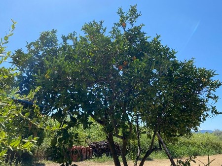 Wir haben ein paar Obstbäume, wenn Früchte drauf sind, könnt ihr sie gerne pflücken. Wenn sie weit oben hängen, dann haben wir einen Obstpflücker im Eingangsbereich stehen.