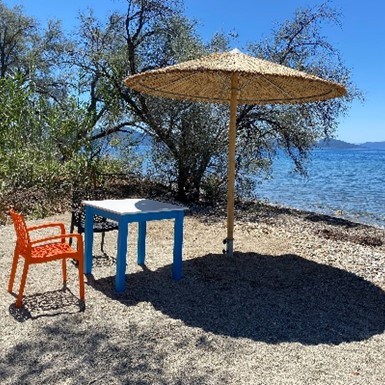 Ihr werdet sehen, der Strand gehört praktisch euch ganz alleine. Hin und wieder verirren sich aber Leute hierher. In Griechenland ist der Strand immer öffentlich, es darf also jederzeit jemand sein Handtuch unter einem der Bäume ausbreiten! Wenn er sich auf unsere Liegen legt, könnt ihr ihn (sie) aber freundlich „vertreiben“ auch die Sonnenschirme gehören uns!