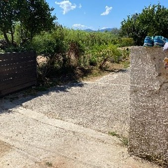 Um zum Haus zu gelangen, muss man mit dem Auto durch das Gartentor, welches meist geschlossen, aber nicht versperrt ist. Unsere Parkplätze sind direkt vor dem Haus, also fahre bis zum Ende dieses Weges (die Apartments rechts gehören nicht uns). Es haben 3 Autos Platz vor dem Haus.