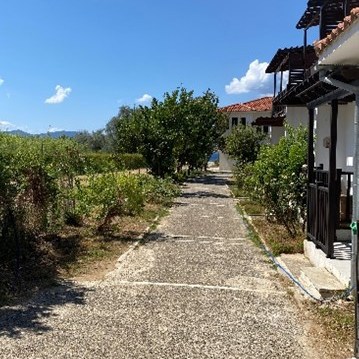 Links und rechts gibt es keine unmittelbaren Nachbarn. Die Apartmenthäuser hinter der Villa Doti gehören Thanos, dem Vorbesitzer der Villa Doti. Sein Vater hat das Haus ca 1990 gebaut und nach seiner Frau Doti (Theodora) benannt. Thanos lebt mit seiner kleinen Tochter Gloria in Athen und die Apartmenthäuser sind Ferienhäuser für sich und seine Familie. Sie sollten die Zufahrt (die uns beiden gehört) nicht verparken und auch nicht auf unseren (betonierten) Parkplätzen stehen.